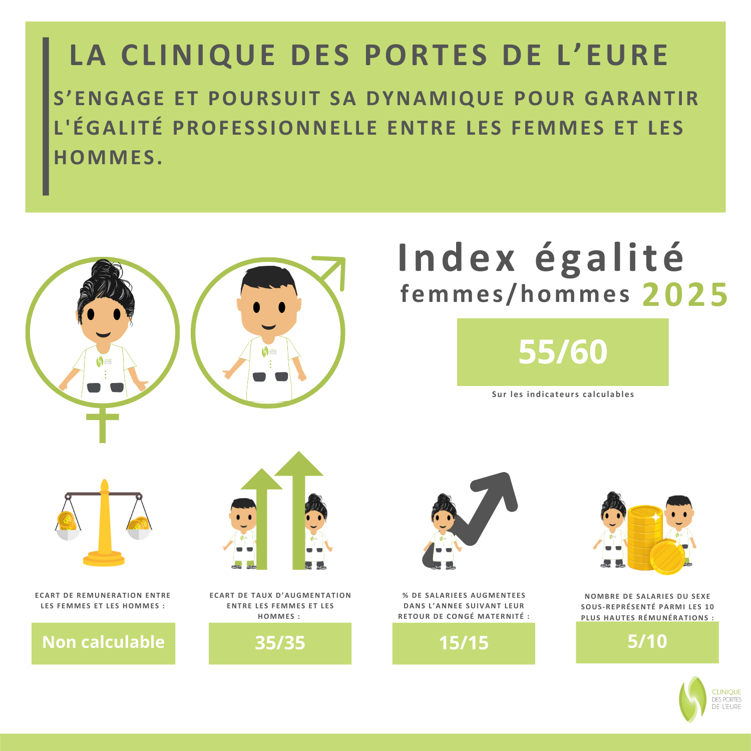 À la Clinique des Portes de l’Eure, l’égalité professionnelle entre les femmes et les hommes n’est pas un simple objectif : c’est une valeur quotidienne. Nous croyons qu’un environnement de travail diversifié, inclusif et équitable est un moteur de performance et de bien-être pour tous nos collaborateurs.